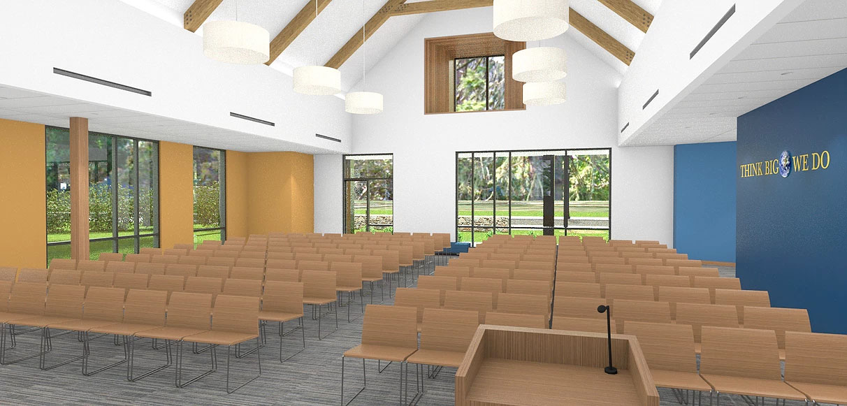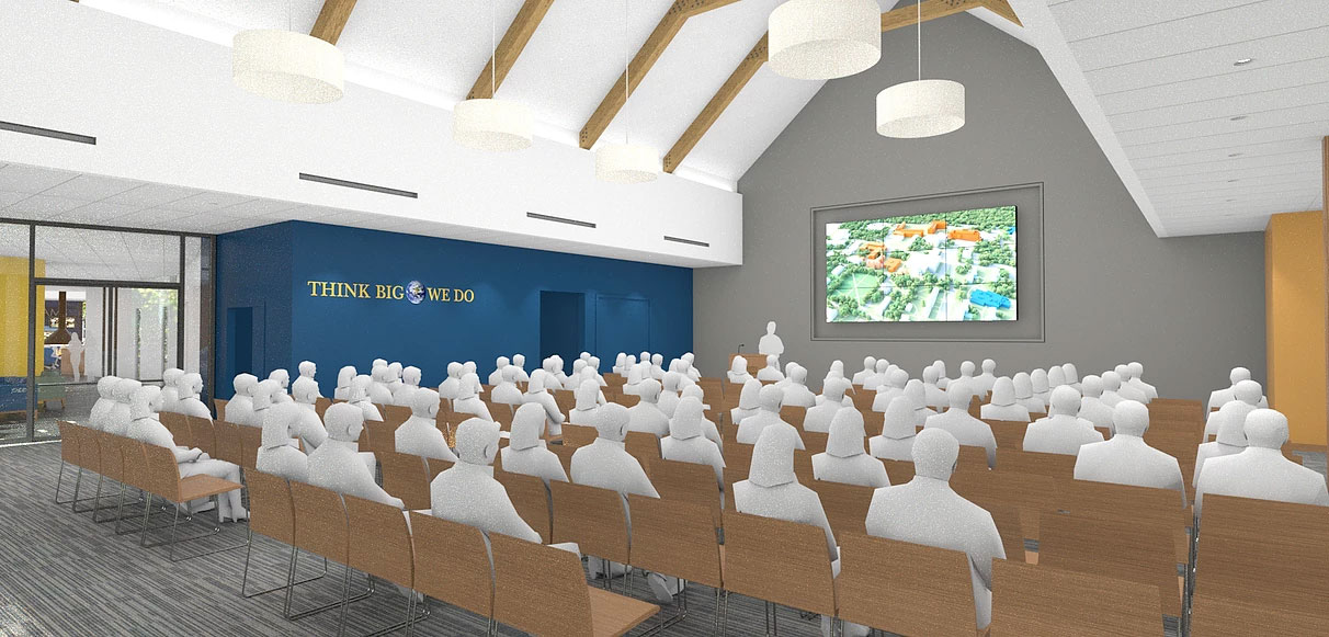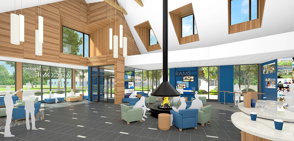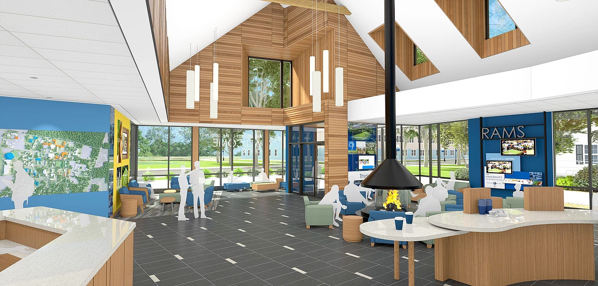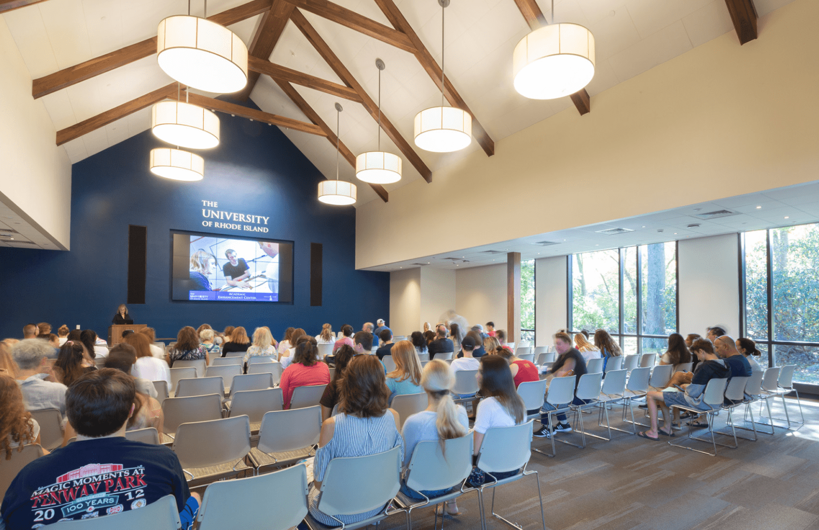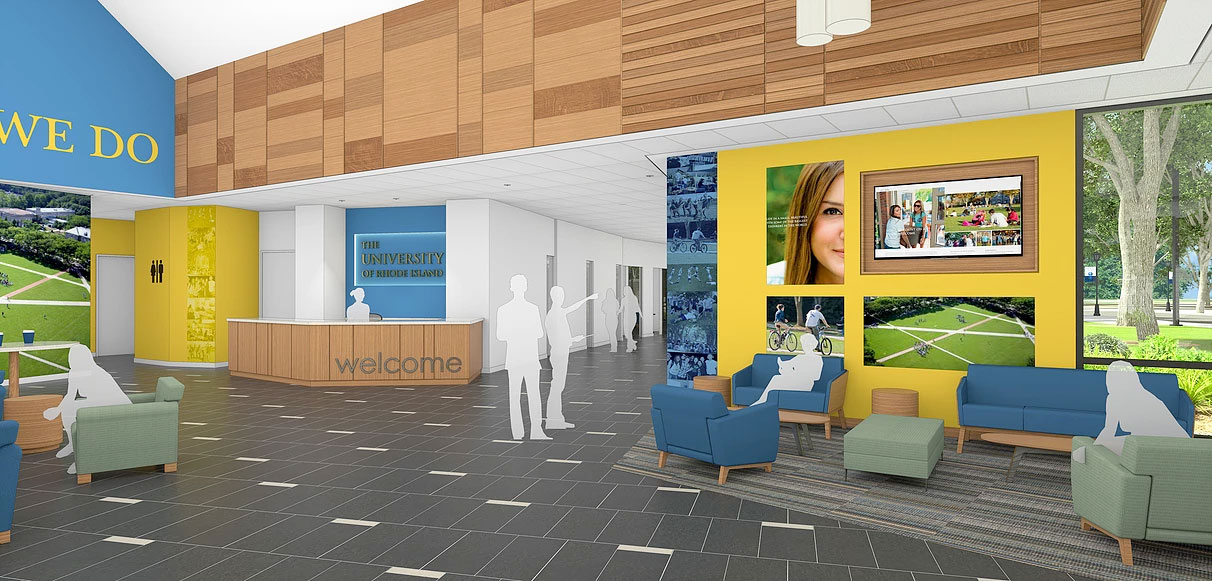 The new on story 11,030 SF URI Welcome Center will be able to accommodate 435 people at the same time. It will include an open reception area where staff can greet visitors and groups can congregate before or after tours. It will also feature two presentation areas for informational sessions, three offices, three mini-conference rooms, flexible “float” offices for staff to use during the busy season, and a large conference room. Outside, pedestrian-friendly walkways and seating visually and physically connect the building to the heart of the campus. This project was designed using VRF system, perimeter heating system in Revit 2016. This building is anticipating LEED Silver certification.